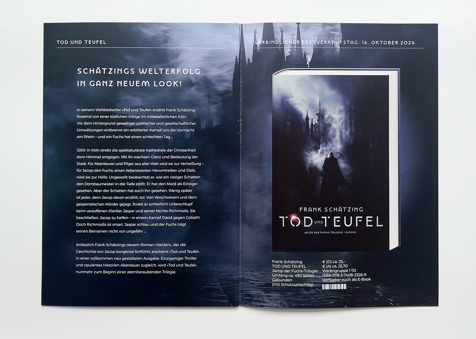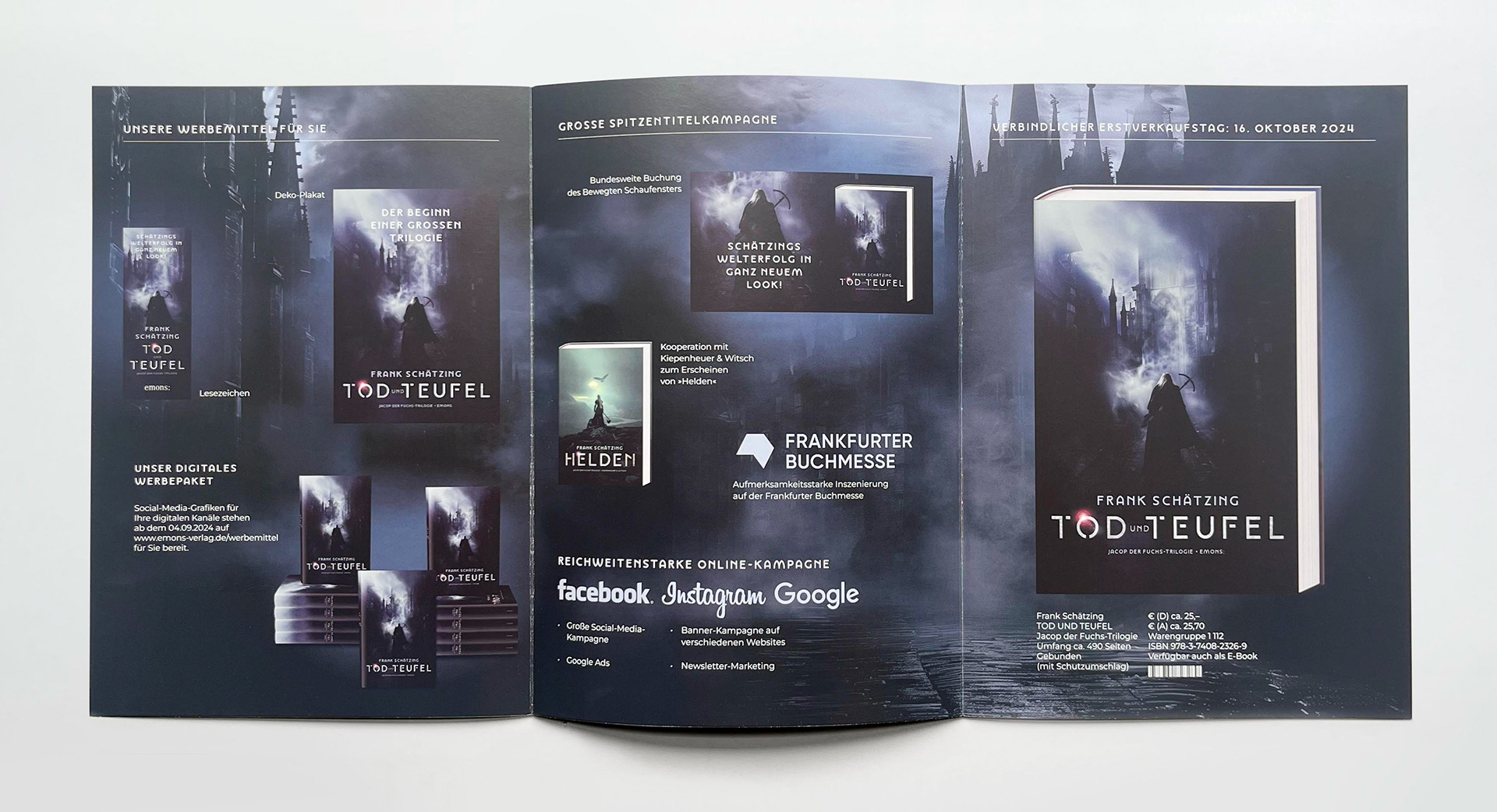 Buchcovergestaltung und Werbemaßnahmen für einen mehrteiligen Roman (Art Direction)