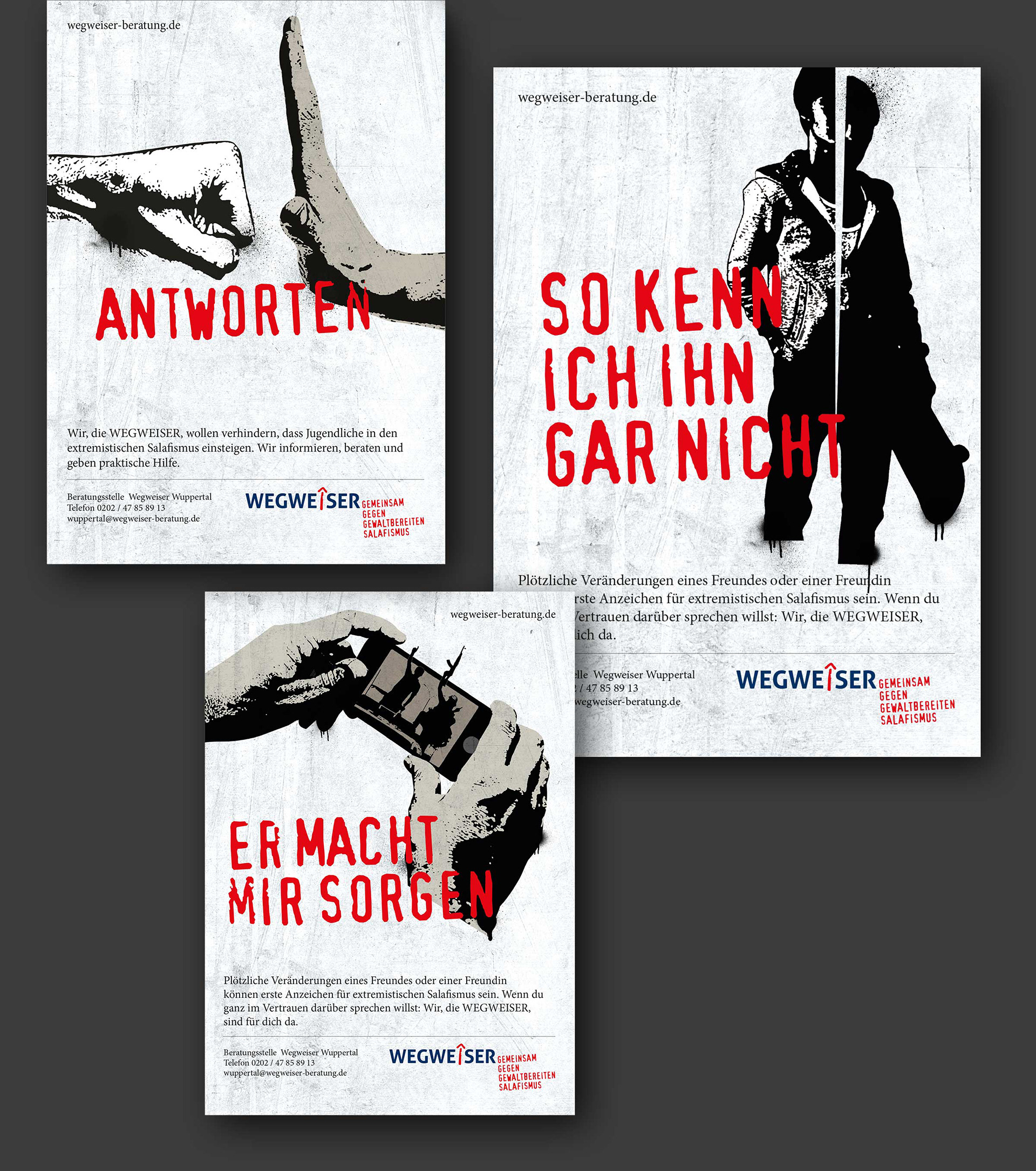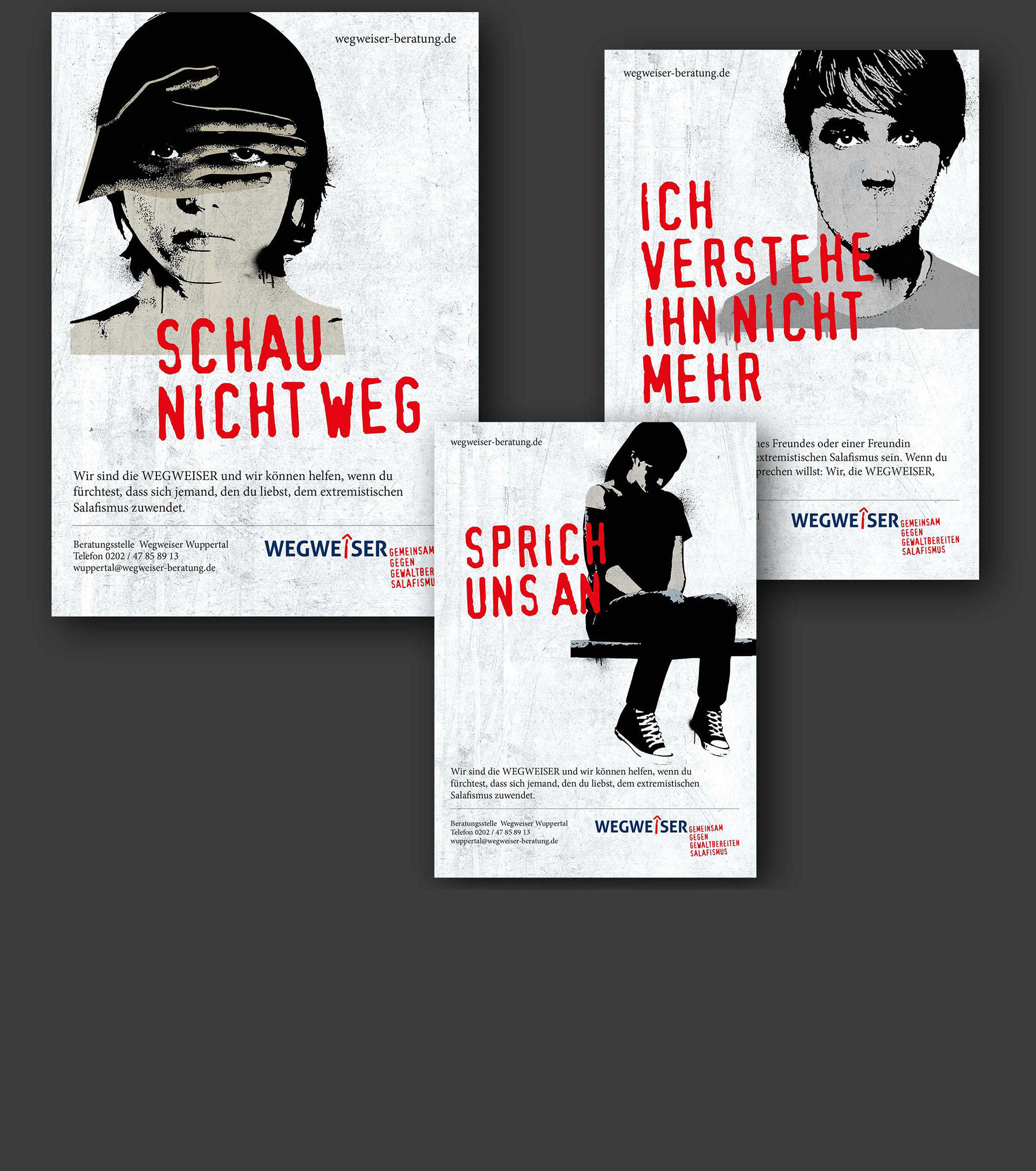 Visuals für eine Kampagne von "Wegweiser", einem Präventionsprogramm des Landes NRW gegen Islamismus (Art Direction, Illustration)